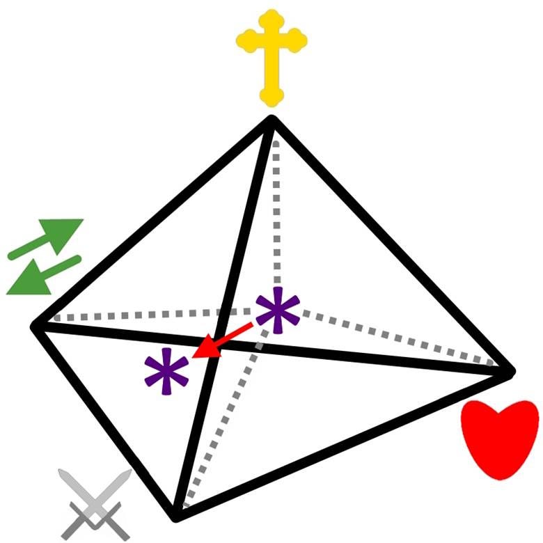 The best way to visualize these forces is to envision a four-corner pyramid as shown below. A 4-corner pyramid cannot stand if one corner is missing. The 4-corners must be in balance for the pyramid to stand upright. The same applies to civilization.